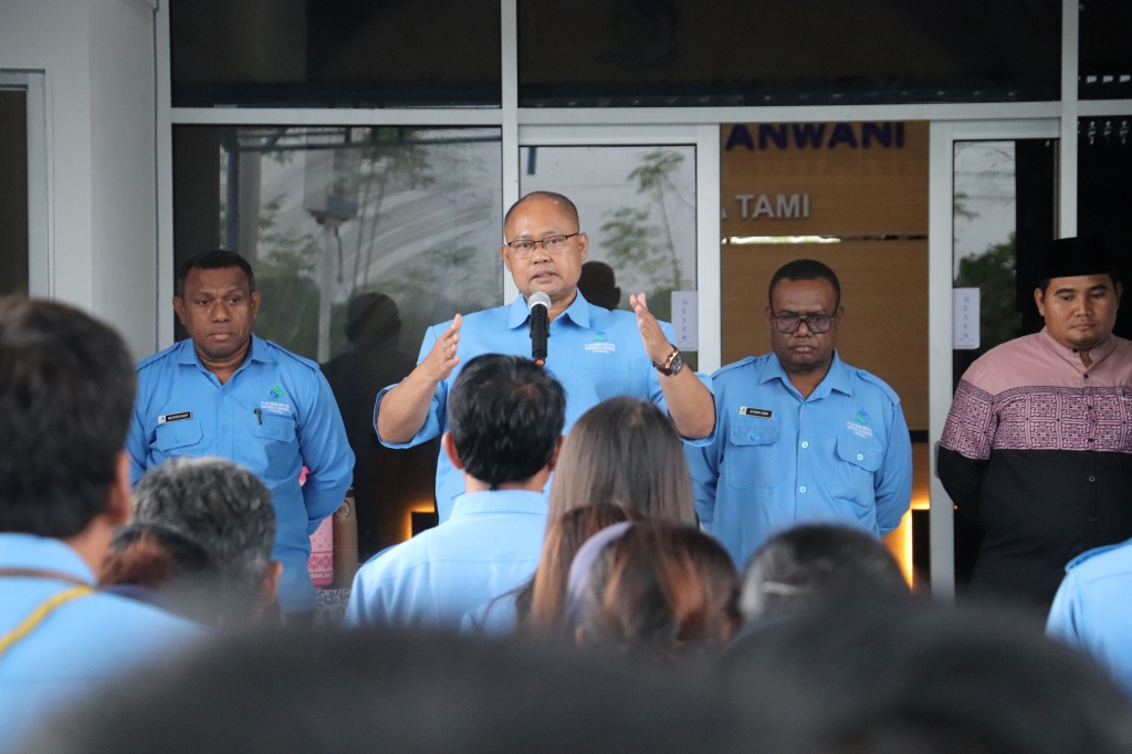 "Segenap tukang ledeng Jayapura meresmikan gedung baru kantor cabang Muara Tami yang ditandai dengan apel gabungan. Setelah pelayanan berjalan 4 tahun sejak 2021 di ruko kontrakan, kini PTAM Jayapura (Perseroda) cabang Muara Tami resmi menggunakan gedung baru dengan status kepemilikan sendiri. Perkembangan pelanggan di Muara Tami mengikuti pertumbuhan jumlah perumahan baru kategori rumah tangga menengah dan bangunan pertokoan kategori niaga. Ini menjadi peluang perusahaan dalam menambah jumlah pelanggan di Distrik Muara Tami," kata Direktur Utama PTAM Jayapura (Perseroda) Dr. Entis Sutisna, SE, MAk, MM, CA, CGRM pada apel gabungan di cabang Muara Tami, Senin (3/11).